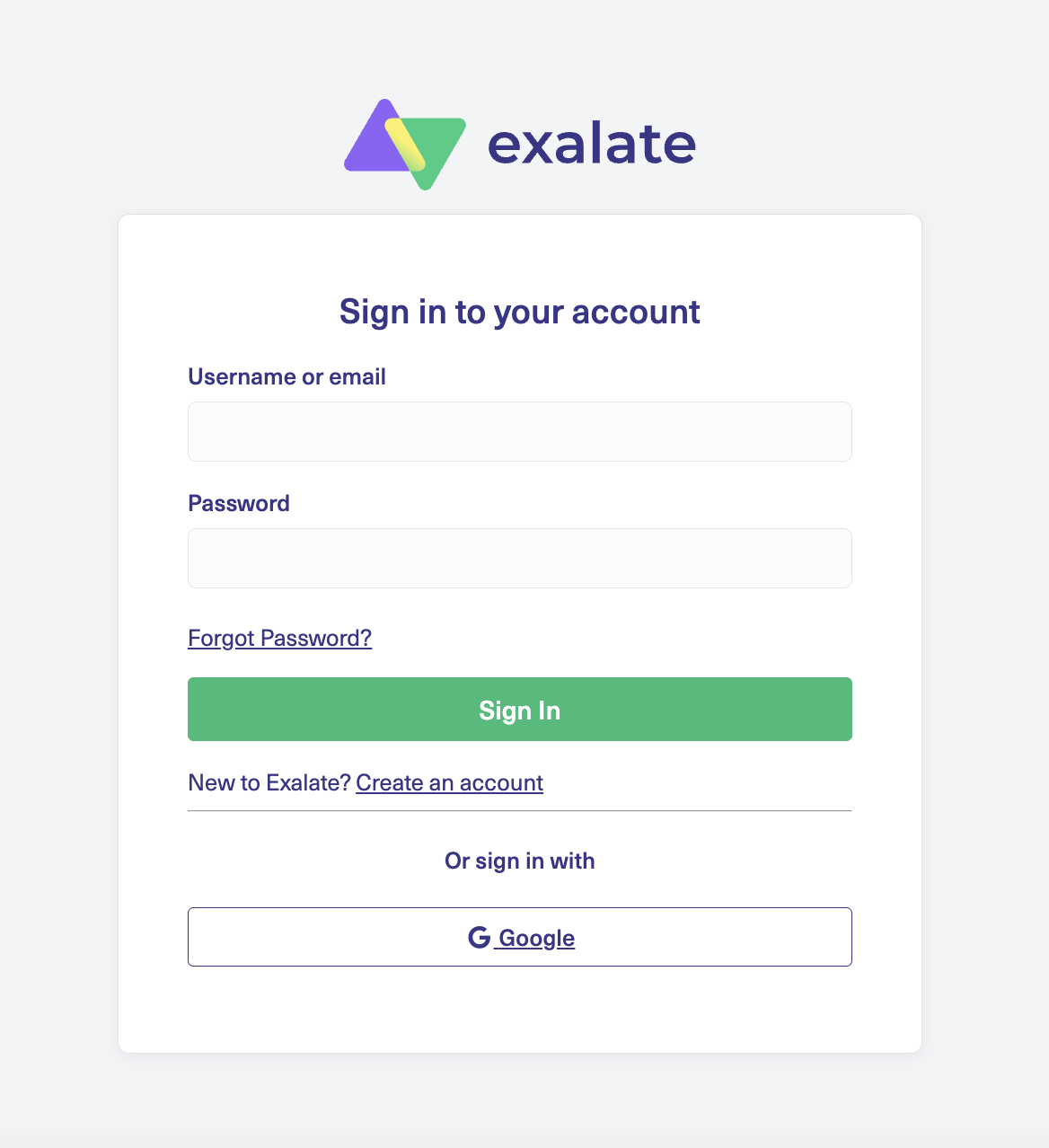 - Returning to the New Exalate login page, click Sign in with Google