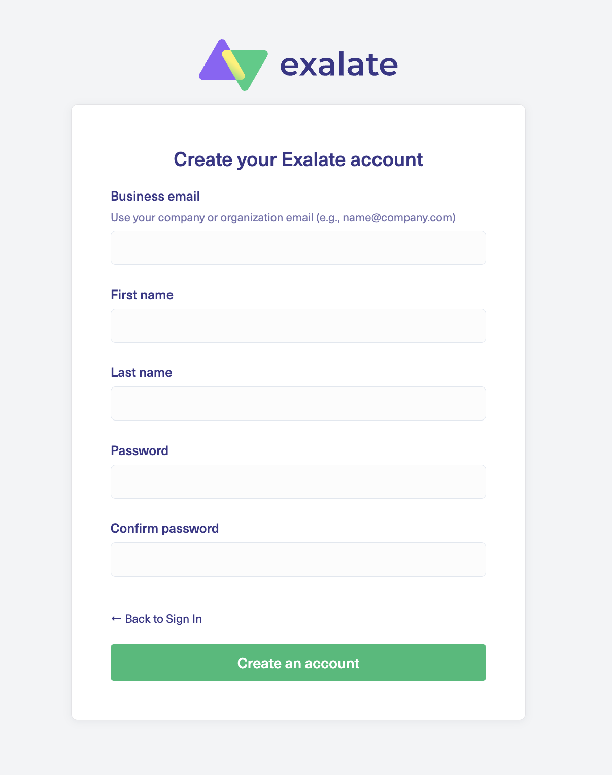 New Exalate console allows you to create your own account through a simple self-service registration process. You can register using your business email or sign in with your Google account.