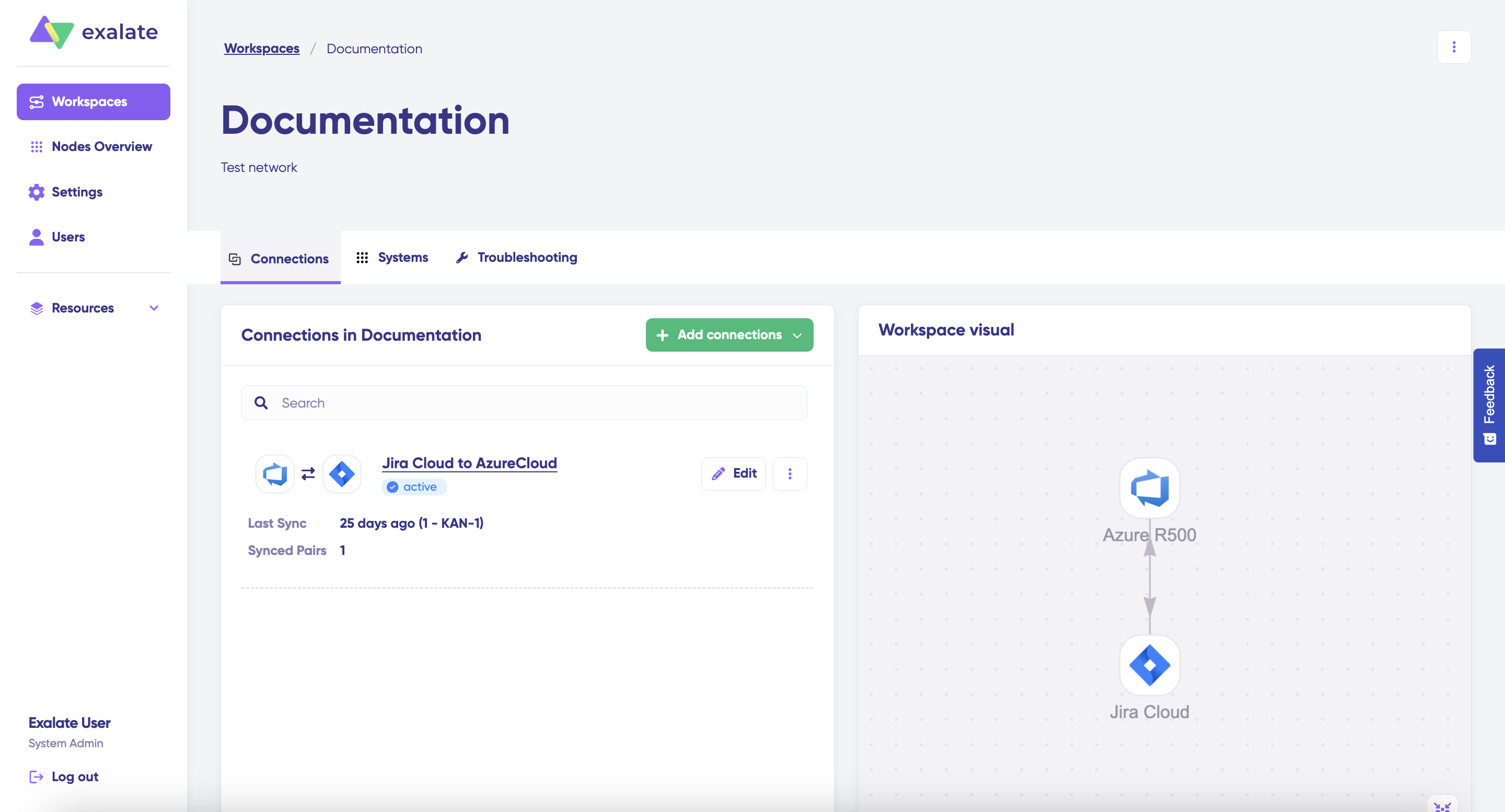 In New Exalate console, Workspaces help you organize and manage your systems and connections efficiently. You can find all existing workspaces under the Workspaces tab.
