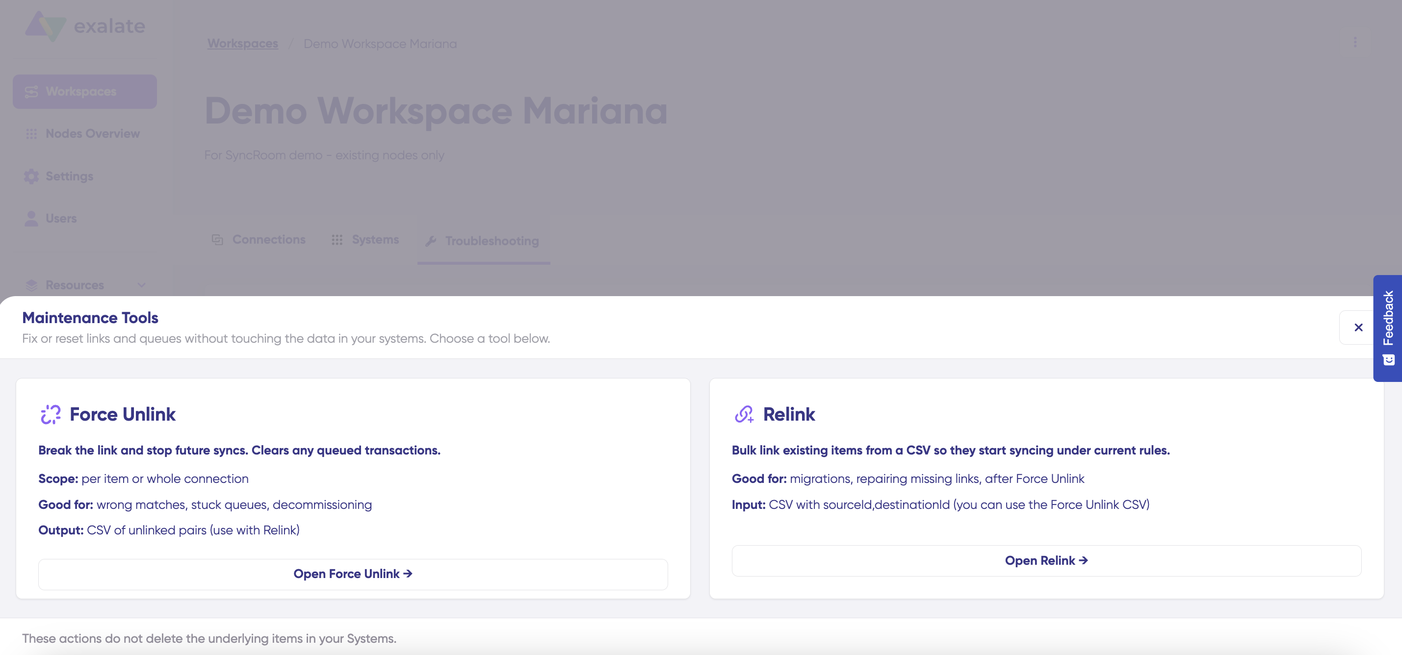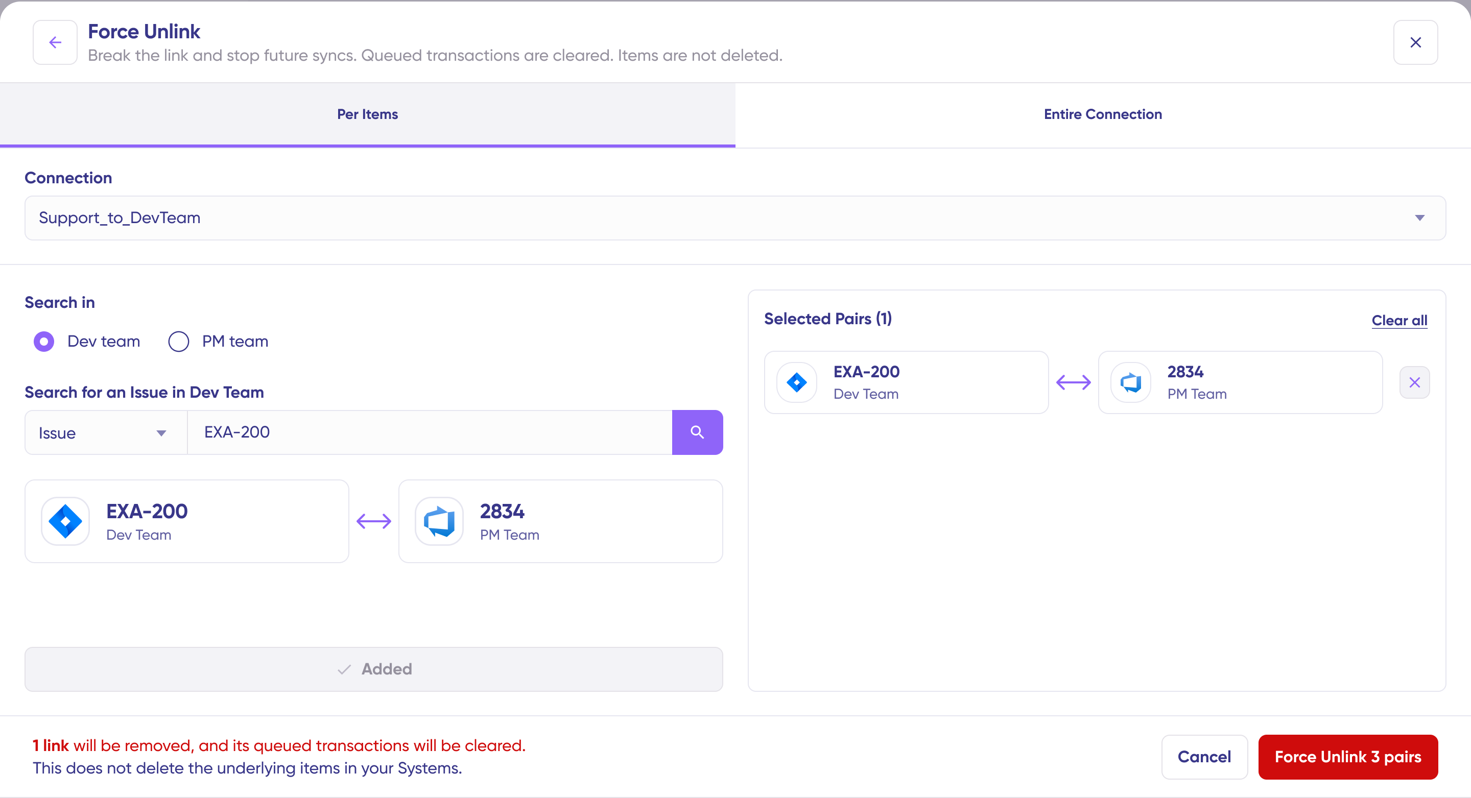Important: Force Unlink does not delete items from your connected systems—it only removes the synchronization relationship between them.