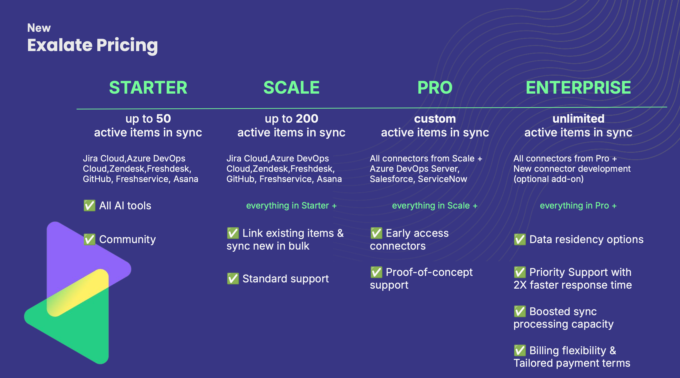 Exalate offers four subscription tiers to accommodate different organizational needs:
